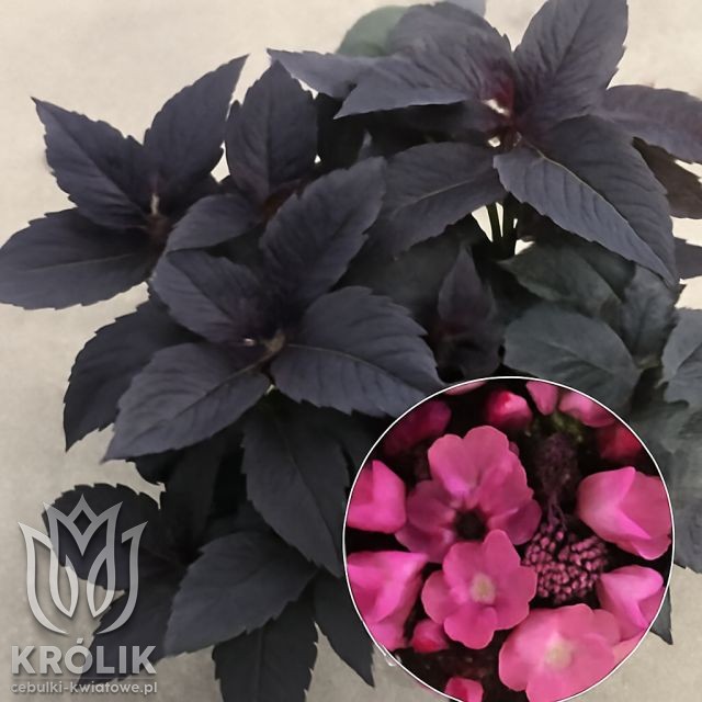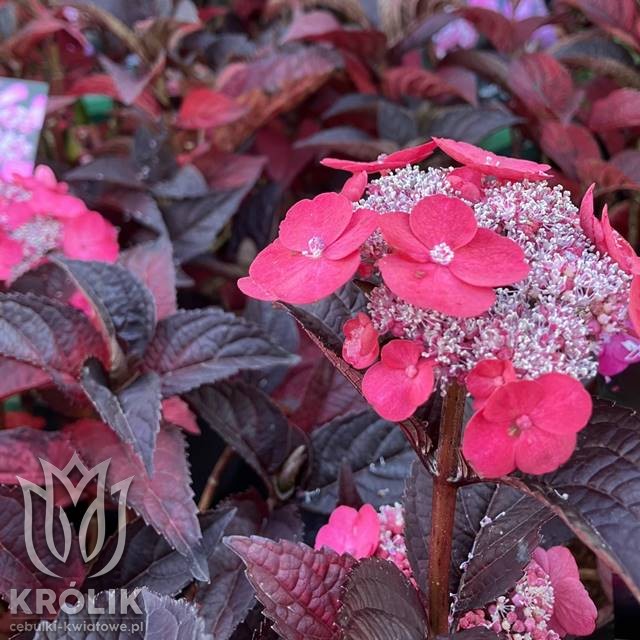 Hortensja piłkowana Hydrangea serrata 'Daredevil' to nieprzeciętna odmiana, która zachwyca intensywnym, bordowo-czerwonym ulistnieniem oraz urzekającymi, różowymi kwiatami. Liście pojawiają się już wiosną w głębokim odcieniu purpury, a latem roślina eksploduje kolorami – jej kwiaty pięknie kontrastują z ciemnym tłem. Ta kompaktowa hortensja idealnie sprawdza się w donicach, rabatach i cienistych zakątkach ogrodu.