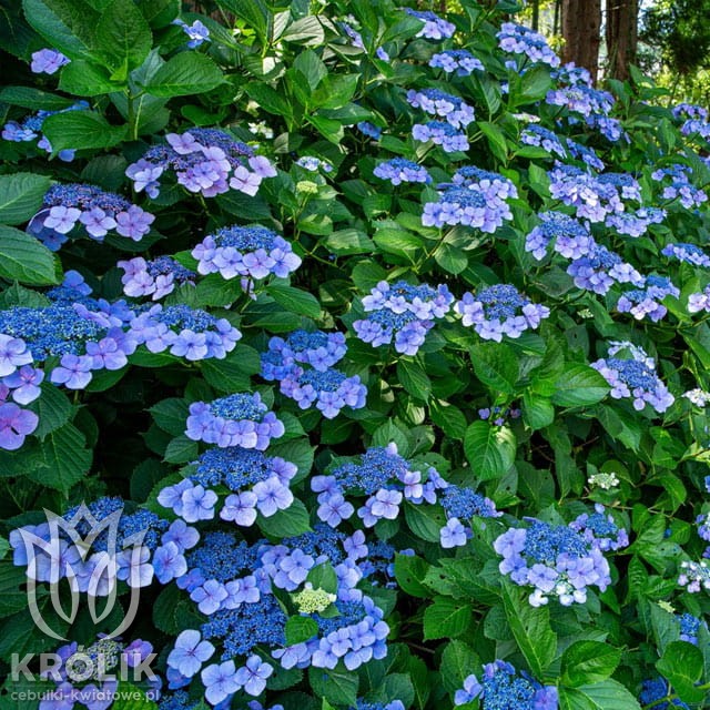 barwie kwiatów zależnej od pH podłoża i jasnozielonych liściach, które we