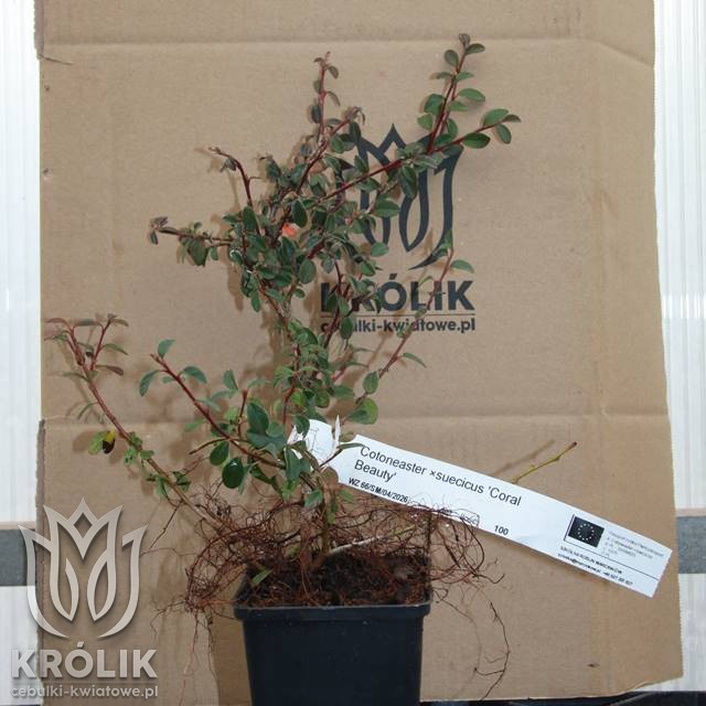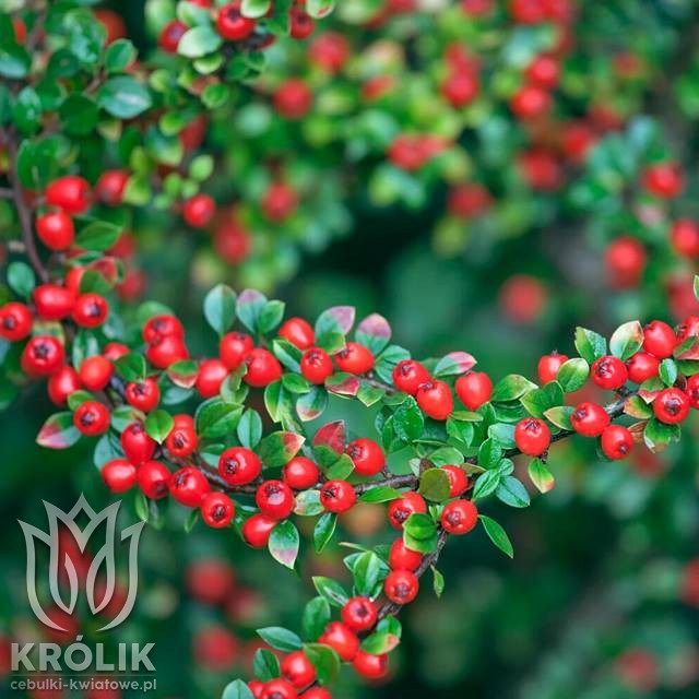 Irga szwedzka Cotoneaster dammeri ‘Coral Beauty’ to niska, zimozielona krzewinka o rozłożystym, płożącym pokroju, która doskonale sprawdza się jako roślina okrywowa. Tworzy gęste, zielone kobierce z drobnych, błyszczących liści, które utrzymują się przez cały rok. Wiosną pojawiają się delikatne, białe kwiaty, a jesienią i zimą roślinę zdobią liczne, koralowoczerwone owoce, które długo utrzymują się na pędach i stanowią pokarm dla ptaków. To roślina niezwykle dekoracyjna i łatwa w uprawie. 🌿🐦