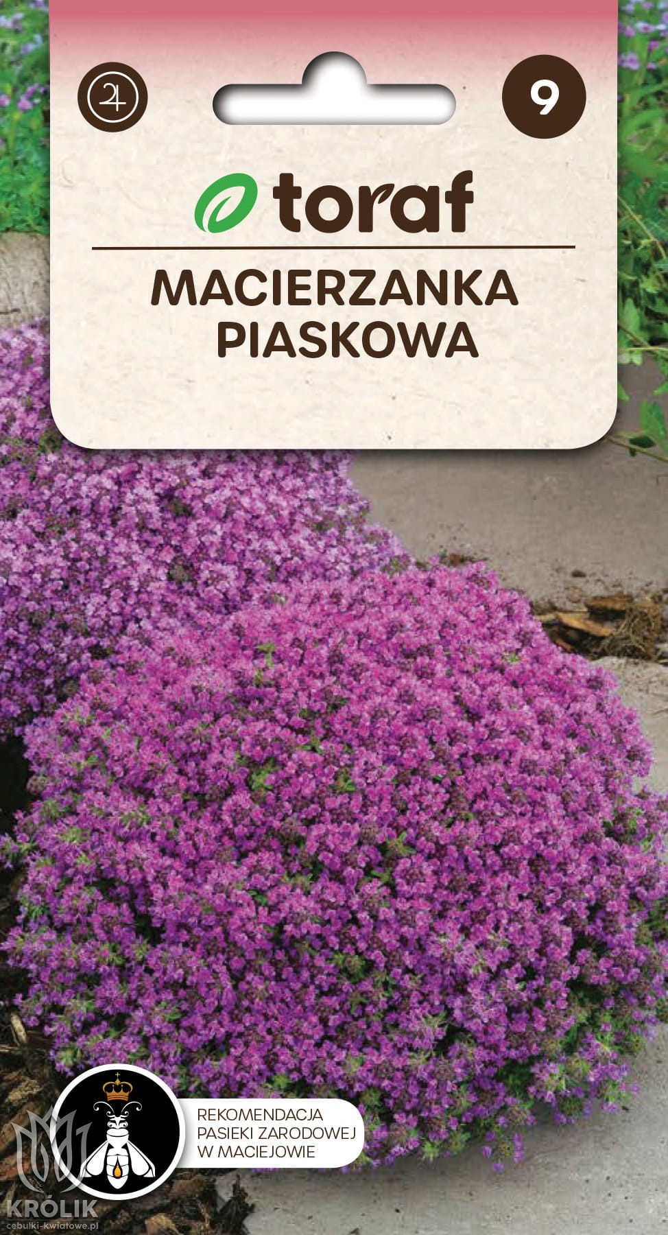 Bylina o drobnych kwiatach, tworząca główkowate kwiatostany barwy purpurowej. Wysokość od 10 do 30 cm. Pędy płożące, a także wzniesione. Gatunek rodzimy w pełni mrozoodporny. Doskonała na rabaty, skalniaki, murki. Roślina niezwykle ceniona ze względu na swoje właściwości lecznicze. Wymaga gleby przepuszczalnej, suchej.