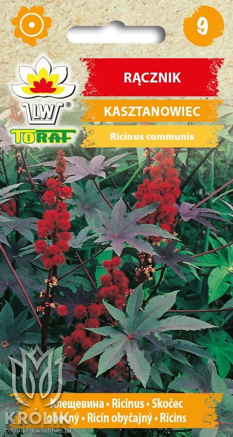Okazała roślina jednoroczna o ozdobnych bordowo-zielonych, dłoniastych